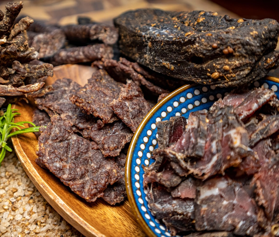 Droewors Jerky in a 4oz bag air-dried, high-protein South African meat snack.